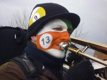 Keywords: trombone brass band carnival human masks music