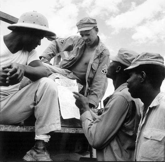 | Keywords: "... troops in Burma stop work briefly to read President Truman's Proclamation of Victory in Europe.", 05-09-1945 - NARA - 531341.tif Local identifier 111-SC-262229 Department of Defense Department of the Army Office of the Chief Signal Officer 09/18/1947 - 02/28/1964 Still Picture Records Section Special Media Archives Services Division NWCS-S National Archives at College Park 8601 Adelphi Road College Park MD 20740-6001 1945-05-09 Record group Record Group 111 Records of the Office of the Chief Signal Officer 1860 - 1985 Record group ARC 440 Signal Corps Photographs of American Military Activity compiled 1754 - 1954 Series ARC 530707 Variant control numbers NAIL Control Number NWDNS-111-SC-262229<br /> Select List Identifier AFRO/AM LIST 12 General notes Scope and content File unit File unit ARC yes Other versions 100px NARA-cooperation PD-USGov VE Day African American soldiers Burma Campaign 1944-1945 United States Army in World War II Retouched images by User 1Veertje NARA TIF images with categorized JPGs |