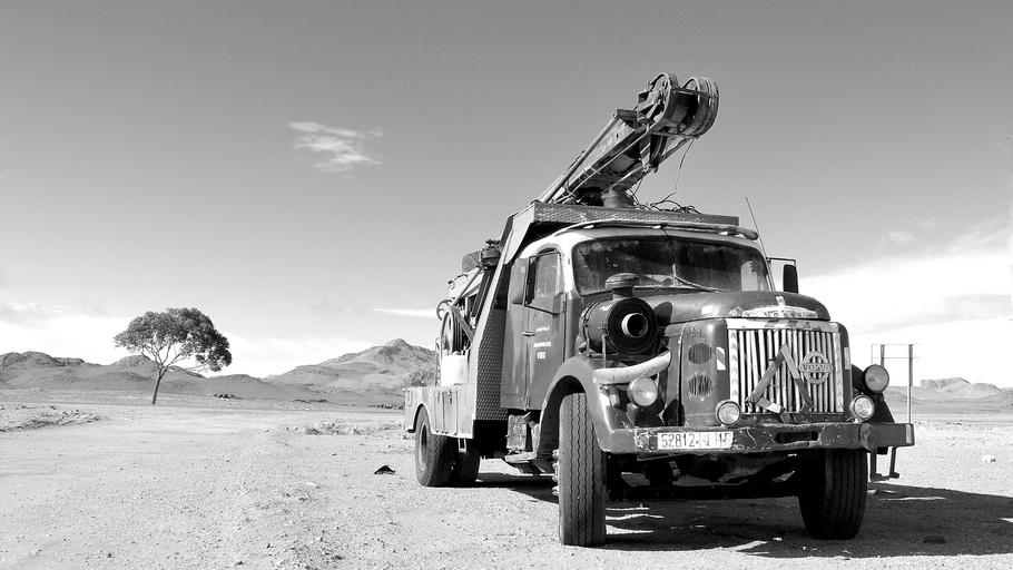 Keywords: truck black white oil probe vintage retro volvo desert
