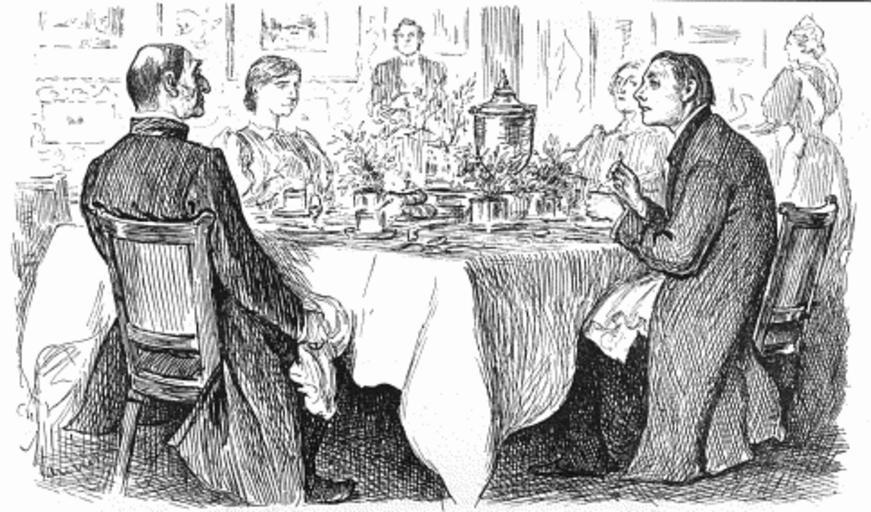| Keywords: True humility.png Caricature de George du Maurier pour le magazine satirique anglais Punch True Humility cartoon by George du Maurier from Punch November 9 1895 Scanned by Malcolm Farmer from the 1895 bound volume of Punch on 31 Aug 2004 Origin of phrase Curate's egg The bishop says I'm afraid you've got a bad egg Mr Jones Apparently trying to avoid offence or curry favor the curate replies Oh no my Lord I assure you that parts of it are excellent taken from en wikipedia org PD-art George du Maurier Dining rooms in art 1895 cartoons Humility Punch magazine cartoons 9 November 1895 Eggs in art Bishops in art Artworks missing infobox template |