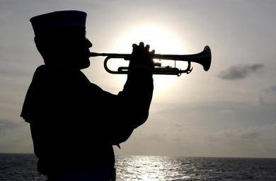 Keywords: trumpeter sailor silhouette sea ship trumpet horn brass military navy duty solemn ocean instrument commemorate tribute special occasion vessel sun usa