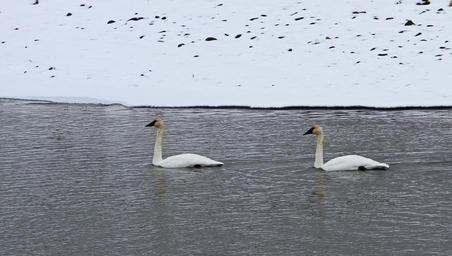 Keywords: yellowstone national park yellowstonenationalpark yellowstone national park nationalpark wyoming wildlife birds outdoor bird animal Trumpeter swans on Yellowstone River in Hayden Valley; Jim Peaco; November 2012; Catalog #19037d; Original #IMG_9382 Trumpeter swans on Yellowstone River in Hayden Valley; Jim Peaco; November 2012; Catalog #19037d; Original #IMG_9382