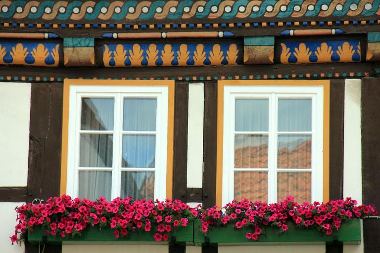 Keywords: truss fachwerkhaus window flowers decor bar carving