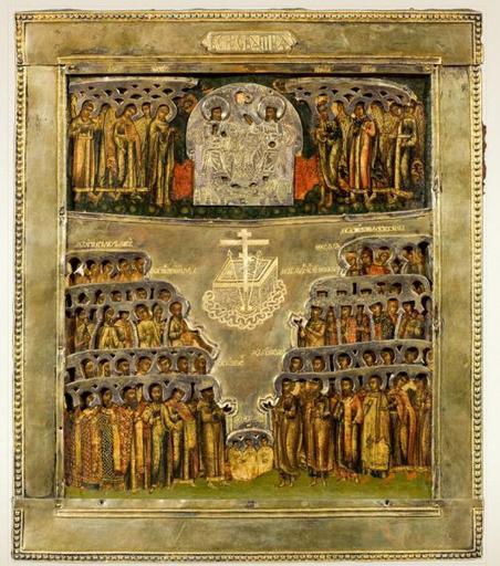 Keywords: Tsarevna Sofia's tomb ikonostasis - 08.jpg АДГРОБ ЫЙ ИКО ОСТАС ЦАРЕВ Ы СОФЬИ В С ОЛЕ СКО СОБОРЕ ОВОДЕВИЧЬЕГО О АСТЫРЯ СУББОТА ВСЕХ СВЯТЫХ Конец XVII века осква О ужейная палата Де ево; темпе а; оклад се еб о; чеканка г ави овка золочение 31 5 х 26 5 х 3 2 узей « оводевичий монасты ь» инв 103803 ИI-105 http //www svyatayarus ru/reference/treasure/224-239_sofiya/index php Конец XVII века anonymous PD-old Tsarevna Sofia's tomb ikonostasis Exhibition Sainte Russie Moscow 2011 - icons Files uploaded by Shakko from various sources 17th-century icons of Russia Icons of All Saints