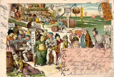 | Keywords: Tsingtau Postkarten 1898.jpg en historic postcard of Qingdao China around 1900 Immanuel Giel own 10 00 10 July 2006 UTC Qingdao 1890 1898 PD-old Postcards of Qingdao Sailors Drinking in art Humorous postcards of China Manchu queues Exotic representations of China in European culture |