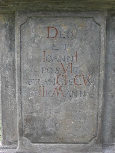 Keywords: (TTO) Teplická Zámecká zahrada 4.jpg cs Fotografie pořízena v Teplické Zámecké zahradě own Qwertz0451 2013-08 Cc-zero Statue of Saint John of Nepomuk in Castle garden Teplice Latin inscriptions in the Czech Republic