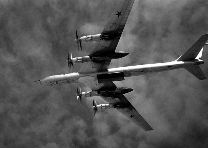 | Keywords: Tu-95 Bear F with open weapons bay 1987.JPEG Underside of a Soviet Tu-95 Bear F with an open weapons bay over the Pacific in 1987 The aircraft had been intercepted by U S Navy McDonnell Douglas F/A-18A Hornet aircraft from strike fighter squadron VFA-151 Vigilantes Carrier Air Wing 5 CVW-5 from the aircraft carrier USS Midway CV-41 U S DefenseImagery http //www defenseimagery mil photo VIRIN DN-SN-88-03231 http //www dodmedia osd mil/DVIC_View/Still_Details cfm SDAN DNSN8803231 JPGPath /Assets/1986/Navy/DN-SN-88-03231 JPG 1987 USN PD-USGov-Military-Navy Aerial photographs of Tupolev Tu-95 in flight Black and white photographs of aircraft Strike Fighter Squadron 151 United States Navy |