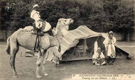 Keywords: Tuareg 1907.jpg Postcard of a Tuareg displayed with his camel in the 1907 Colonial Exhibition Photographe anonyme LL Exposition Coloniale 1907 Touareg sur son Mehari carte postale nr 87 1907 Postcard LL nr 87 ca 1907 Anonymous-EU Original upload log 16 55 22 May 2006 Lapaz uploaded File Tuareg 1907 jpg Ž <nowiki> Postcard of a Tuareg displayed with his camel in the 1907 Colonial Exhibition Public domain </nowiki> Postcards of Paris Tuareg of Algeria Camel riding 1907 postcards 1907 in Paris Exposition coloniale de Paris 1907 |