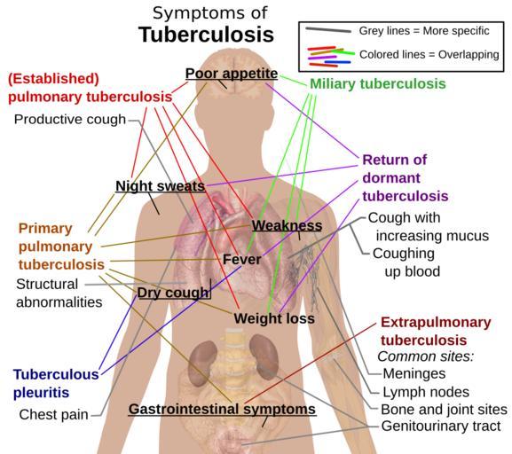 Keywords: Tuberculosis symptoms.svg en Main symptoms of different variants and stages of tuberculosis See Wikipedia Tuberculosis with many symptoms overlapping with other variants while others are more but not entirely specific for certain variants Multiple variants may be present simultaneously <P>To discuss image please see Template talk Human body diagrams <P>References http //www emedicinehealth com/tuberculosis/page3_em htm Tuberculosis Symptoms From eMedicineHealth Author George Schiffman MD FCCP Last Editorial Review 1/15/2009 Additional symptoms for primary/early pulmonary infection http //www wrongdiagnosis com/t/tuberculosis/symptoms htm wrongdiagnosis com --> Diseases » Tuberculosis » Symptoms Retrieved on June 1 2009 All used images are in public domain Mikael Häggström gallery of 2014 2009-06-01 Tuberculosis symptoms versions See also <gallery class nochecker > File Pulmonary tuberculosis symptoms svg Pulmonary tuberculosis symptoms File Extrapulmonary tuberculosis symptoms svg Extrapulmonary tuberculosis symptoms </gallery> Human body diagrams Tuberculosis SVG diagrams of the adult male human body by Mikael Häggström |
