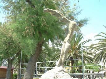 Keywords: Tuffatrice laterale2.jpg Titolo Tuffatrice materiale acciaio rame cementi speciali armati bronzo pietra peso 152 Kg circa Celle Ligure Lupo Rosso PD-self GFDL Cc-by-sa-3 0-migrated Commento generale del critico sulla scultura di Lupo Rosso La scultura ricerca di soluzioni tecniche e rappresentazione delle emozioni Gran parte delle conversazioni sulla scultura avute con il maestro è stata spesa intorno a problemi relativi alla specifica ricerca di alchimistiche combinazioni tra materiali lapidei oppure sui vizi e le virtù delle pietre naturali le più e le meno pregiate come quelle più o meno lavorabili e ancora su complessi studi per ottenere l ™effetto del bronzo lavorando la pietra e così via Questi racconti avvincenti che spiegano il nucleo della ricerca di Alfonso Gialdini si dirigono poi abitualmente verso l ™affascinante rievocazione della volta in cui riuscì a procurarsi per farci una scultura uno splendido e unico blocco di legno tek -forse l ™albero di un ™antica nave o la trave di una vetusta costruzione- o di quando trovò in natura un piccolo e circoscritto giacimento di pietra da lavorare Il suo ufficio domestico separato dall ™officina in cui scolpisce ricorda un piccolo studiolo rinascimentale dove innumerevoli componenti si uniscono in un insieme unitario e indecifrabile arnesi curiosità fossili miniature fogli disposti ordinatamente in perfetto disordine Evidentemente dello scultore genovese accanto alla priorità di una vivida umanità emerge il sostrato dei suoi compiuti studi di ingegneria meccanica che lo portano a legare fortemente l ™azione creativa e ideativa in lui libera e sensibilmente emotiva con i meccanismi di controllo e programmazione propri del metodo scientifico Il risultato è sorprendente perché si rivela capace tanto di far comprendere le virtù tecnico-costruttive della scultura quanto di trasportarci con immediatezza nel mondo delle idee e delle emozioni L ™artista investe sia in scultura figurativa sia in opere di ricerca dinamica astrattamente formali scolpisce in sintesi seguendo un ™ispirazione di tipo sintetico-antropomorfo L ™oggetto principale del suo studio è la rappresentazione della figura femminile proposta in numerose varianti di sensibilità ferina Venere steatopigica di sapore tribale o esile ma monumentale tuffatrice sospesa per aria Ancora fatta tutta di membra calda protettrice dell ™uomo che avvolge con forti abbracci o fiera sostenitrice del primario contributo femminile alla vita quando non ambisce a suonare con il proprio corpo come la cassa armonica del violino L ™alternativa per il maestro sono le teste di cavallo naturalistiche rappresentazioni di colli nervosi negli studi per sé o dinamiche e forti macchine belliche come locomotive in corsa con le redine che diventano bielle cavalli che sono il simbolo della corsa alla liberazione dei popoli bestie forti e docili che stramazzano sacrificandosi di fronte a un ingiusto e violento trattamento del padrone Il Rompighiaccio sul tema-studio delle teste di ariete rappresenta ancora questa tensione potente difficilmente governabile lanciata verso un destino mortale A Genova il maestro dal 1995 mette a disposizione dei degenti dell ™ex ospedale psichiatrico di Quarto i propri mezzi e conoscenze organizzando corsi di scultura all ™interno di un programma di riabilitazione espressiva ottiene particolari successi nel veder migliorare anche attraverso questa esperienza la condizione degli allievi Marco Franzone saggista in storia arte genovese commento del critico Specifico Nuova scultura a Celle Ligure E ' stata inaugurata di recente la svettante scultura La Tuffatrice dello scultore genovese un'opera fortemente aerodinamica alta m 1 85 e composta da un paio di gambe unite tese nello sforzo di concentrazione per il salto nel vuoto che proseguono nella solidità di un corpo femminile piegato in avanti a squadra all'altezza della vita con braccia e testa chine verso il basso Prende così forma la silhouette di una giovane donna che specie verso il culmine della statua evoca alla percezione visiva l'agile forma di un guizzante delfino L'opera è stata realizzata in cemento e pietra con armatura d'acciaio dalle tonalità oscillanti tra squamature brunite e macchie biancastre a carattere schiumoso Sembra quasi materializzarsi un vibratile derma chiazzato in alcuni punti di porosa salsedine Infatti questa affascinante scultura è stata posizionata sulla sommità di uno scoglio collocato sulla passeggiata a mare di Pennello in prossimità di Celle Ligure così da spruzzarsi di mare entro il quale idealmente dovrebbe tuffarsi Il genovese è solido scultore di figure umane ed animali sovente al limite della figurazione e spesso intese come blocchi petrigni carichi di energia in tensione come è il caso di questo lavoro in cui il corpo è contratto nella solidità muscolare e concentrato nel compimento di un atletico e perfetto tuffo Questa opera è copia di un'altra scultura ed è stata assegnata dall'autore alla cittadina di Celle è stata posizionata sulla passeggiata a mare in occasione del gemellaggio tra la cittadina di Celle in Germania e la nostra cittadina balneare omonima avvenuto venerdì 19 e sabato 20 maggio Miriam Cristaldi La Tuffatrice Alfonso Gialdini