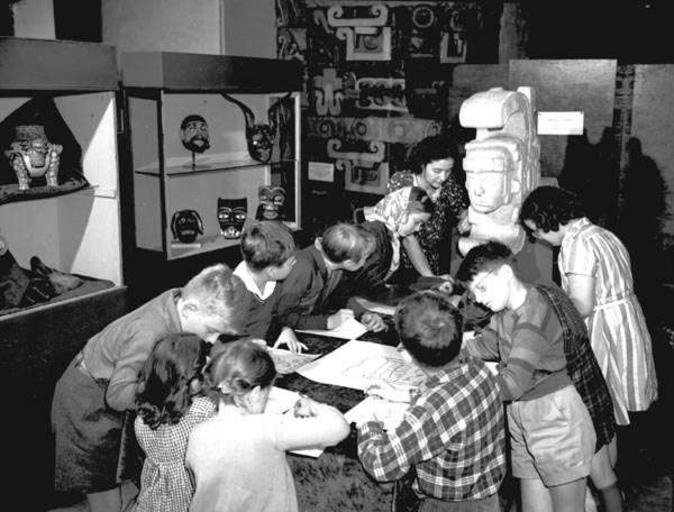 Keywords: Tulane MARI 1941.jpg New Orleans 1941 Pupils of the Bessie Hearn school are busy this year illustrating the manuscript of a Mayan story The Middle American Research Institute museum of Tulane University is cooperating in the many trips for study and sketching These students will exhibit at the YMHA They are negative 5 Miss Jeannette LeBeuf instructor; Linda Dragon and Shaun Vigeurie; negatives 3 4 Dionne Kelly Carol Williams Tommy Farmer Jere Wellborn Bill Marsh Linda Dragon Miss LeBeuf Joan Marks Anite McDougal Shaun Vigeurie and Lester Lautenschlaeger View is in Middle American Research Institute Dinwiddie Hall Tulane University Artifacts from the collection visible including artwork and casts of sculptures from the Maya site of Uxmal and ceremonial dance masks from the Guatemala highlands gathered in the 1920s and 1930s Works Progress Administration photo via http //nutrias org/photos/wpa/wpa07 htm 07 80 photo 3 1941-11-17 Uncredited WPA photographer PD-USGov 1941 in New Orleans Dinwiddie Hall Maya art Museums in New Orleans Dance masks |