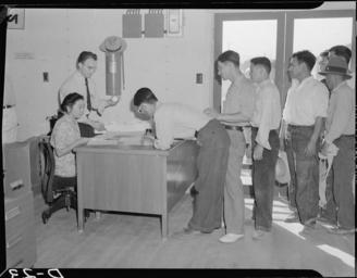 | Keywords: Tule Lake Relocation Center, Newell, California. May Miyamoto, evacuee clerk and Hyrum L. Clark, pr . . . - NARA - 538222.tif Scope and content The full caption for this photograph reads Tule Lake Relocation Center Newell California May Miyamoto evacuee clerk and Hyrum L Clark project personnel clerk distribute identification tags to be used in conjuction with the first pay day at this War Relocation Authority Center General notes 538222 Local identifier 210-G-D23 Department of the Interior War Relocation Authority 02/16/1944 - 06/30/1946 NARA-Author Stewart Francis War Relocation Authority photographer Photographer 8464475 <br /> Still Picture Records Section Special Media Archives Services Division NWCS-S National Archives at College Park 8601 Adelphi Road College Park MD 20740-6001 1942-07-01 Record group Record Group 210 Records of the War Relocation Authority 1941 - 1989 Record group ARC 537 Central Photographic File of the War Relocation Authority compiled 1942 - 1945 Series ARC 536000 File unit File unit ARC Variant control numbers NAIL Control Number NWDNS-210-G-D23 yes Other versions <gallery> File Tule_Lake_Relocation_Center _Newell _California _May_Miyamoto _evacuee_clerk_and_Hyrum_L _Clark _pr_ _ _ _-_NARA_-_538222 tif tif File Tule_Lake_Relocation_Center _Newell _California _May_Miyamoto _evacuee_clerk_and_Hyrum_L _Clark _pr_ _ _ _-_NARA_-_538222 jpg jpg </gallery> NARA-cooperation PD-USGov Tule Lake War Relocation Center NARA TIF images with categorized JPGs |