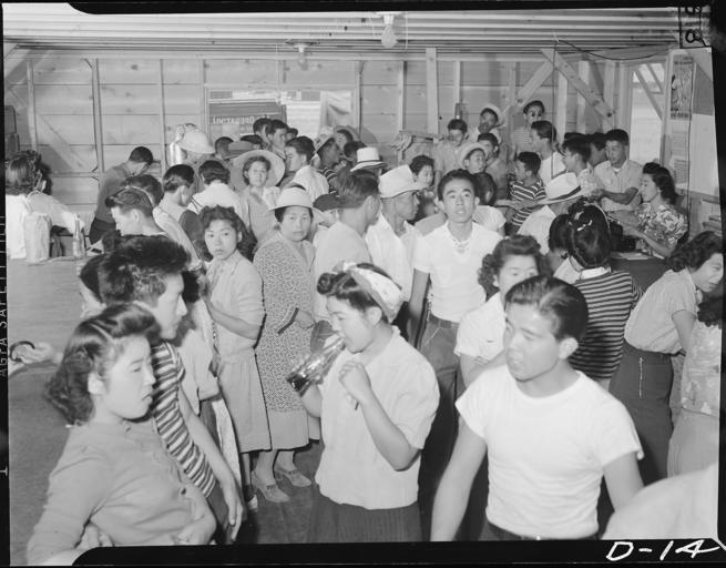 | Keywords: Tule Lake Relocation Center, Newell, California. A view showing part of the crowd at general store . . . - NARA - 538213.jpg Scope and content The full caption for this photograph reads Tule Lake Relocation Center Newell California A view showing part of the crowd at general store Number 1 at this War Relocation Authority center where evacuees of Japanese descent are spending the duration General notes 538213 Local identifier 210-G-D14 Department of the Interior War Relocation Authority 02/16/1944 - 06/30/1946 NARA-Author Stewart Francis War Relocation Authority photographer Photographer 8464475 <br /> Still Picture Records Section Special Media Archives Services Division NWCS-S National Archives at College Park 8601 Adelphi Road College Park MD 20740-6001 1942-07-01 Record group Record Group 210 Records of the War Relocation Authority 1941 - 1989 Record group ARC 537 Central Photographic File of the War Relocation Authority compiled 1942 - 1945 Series ARC 536000 File unit File unit ARC Variant control numbers NAIL Control Number NWDNS-210-G-D14 Other versions <gallery> File Tule_Lake_Relocation_Center _Newell _California _A_view_showing_part_of_the_crowd_at_general_store_ _ _ _-_NARA_-_538213 tif tif File Tule_Lake_Relocation_Center _Newell _California _A_view_showing_part_of_the_crowd_at_general_store_ _ _ _-_NARA_-_538213 jpg jpg </gallery> NARA-cooperation PD-USGov People in Tule Lake War Segregation Center Shop Building interiors in California Shops Buildings in Tule Lake War Segregation Center ¢Shop Black and white photographs of people California 1942 in California Group July 1942 in the United States |