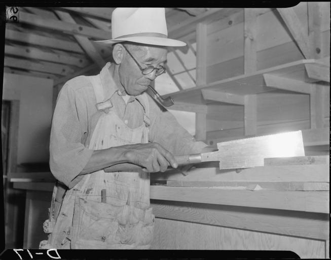 | Keywords: Tule Lake Relocation Center, Newell, California. Cabinet worker's saw is expertly used by Jime Kaba . . . - NARA - 538216.jpg Scope and content The full caption for this photograph reads Tule Lake Relocation Center Newell California Cabinet worker's saw is expertly used by Jime Kabayashi 62 on the interior construction of general store Number 2 at this War Relocation Authority center for evacuees of Japanese descent Jime prior to evacuation had resided in Sacramento for 24 years and has been a carpenter for 42 years General notes 538216 Local identifier 210-G-D17 Department of the Interior War Relocation Authority 02/16/1944 - 06/30/1946 NARA-Author Stewart Francis War Relocation Authority photographer Photographer 8464475 <br /> Still Picture Records Section Special Media Archives Services Division NWCS-S National Archives at College Park 8601 Adelphi Road College Park MD 20740-6001 1942-07-01 Record group Record Group 210 Records of the War Relocation Authority 1941 - 1989 Record group ARC 537 Central Photographic File of the War Relocation Authority compiled 1942 - 1945 Series ARC 536000 File unit File unit ARC Variant control numbers NAIL Control Number NWDNS-210-G-D17 Other versions <gallery> File Tule_Lake_Relocation_Center _Newell _California _Cabinet_worker's_saw_is_expertly_used_by_Jime_Kaba_ _ _ _-_NARA_-_538216 tif tif File Tule_Lake_Relocation_Center _Newell _California _Cabinet_worker's_saw_is_expertly_used_by_Jime_Kaba_ _ _ _-_NARA_-_538216 jpg jpg </gallery> NARA-cooperation PD-USGov Tule Lake War Relocation Center |
