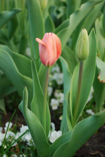 Keywords: tulip flowers nature plants flower spring garden bed green pink