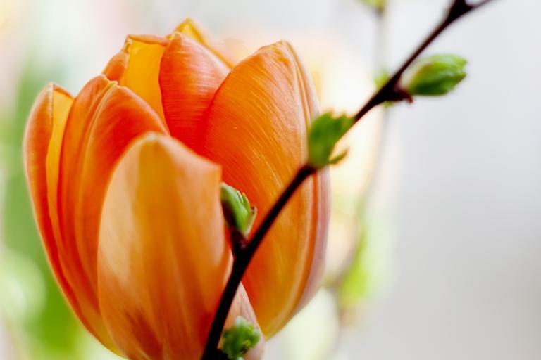 Keywords: tulip macro orange blossom bloom nature plant flower spring lily schnittblume flora flower bracts yellow blossomed close pastellfarben green colorful pistil holland