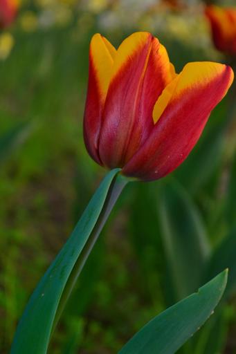 Keywords: tulip only green red summer nature colors yellow garden leaf detail
