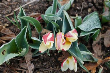 Keywords: tulip plant green iced leaves nature spring cold freeze grass ice crystal grow winter
