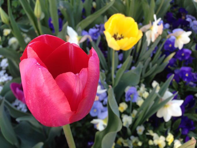 Keywords: tulips flower garden floral spring colorful blossom natural bloom fresh gardening landscape season pink bright outdoors