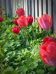 Keywords: tulips flower plant flora flowers fence spring pink