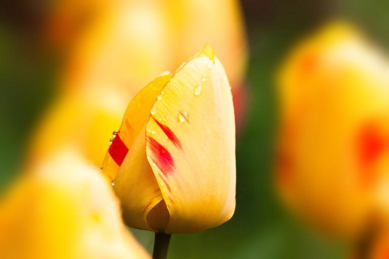 Keywords: tulips lily nature flowers schnittblume blossom bloom plant flora flower bracts red yellow orange bloom spring lenz in the free garden macro close raindrop