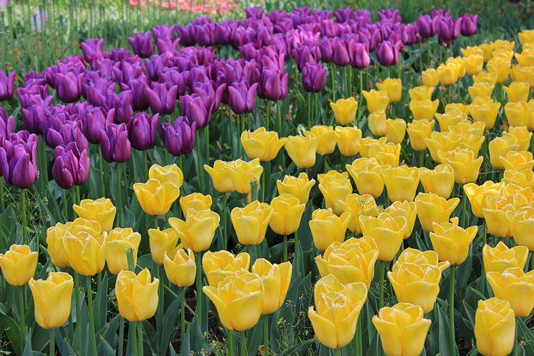 Keywords: tulips spring flowers nature yellow purple tulip bloom park holland
