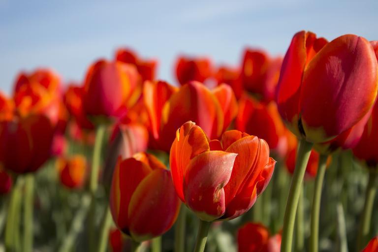 Keywords: tulips spring netherlands tulip fields flower flowers red color plants summer nature garden orange yellow bloom plant sun blossom blue sky blue