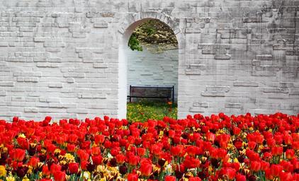 Keywords: tulips spring red bloom blossom bloom flower door wall opening