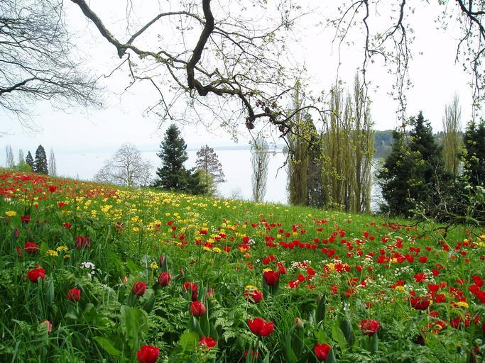 Keywords: tulips tulip meadow green blossom bloom red schnittblume flora plant