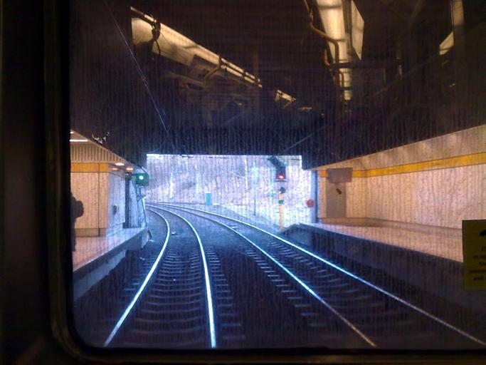 Keywords: Tunnel exit at Jesmond Metro station from northbound train 2010-03-01.jpg Jesmond station on the Tyne and Wear Metro The view from the front of a Metrocar as it comes to stop in Platform 2 en route to Airport station own Metrognome2 2010-03-01 Jesmond Metro station |
