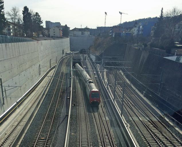| Keywords: Tunnels Oerlikon cropped.jpg en Portals of three railway tunnels in Oerlikon Zürich Switzerland “ from left Weinbergtunnel Wipkingertunnel Käferbergtunnel “ S-Bahn train coming from Zürich Hauptbahnhof leaving Weinbergtunnel 2015-03-08 File Tunnels Oerlikon jpg cropped to remove foreground User Albinfo other versions cc-zero Käferbergtunnel Oerlikon Rail tunnels in Switzerland Weinbergtunnel Wipkingertunnel | ||||