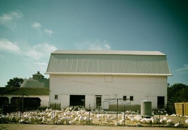 Keywords: turkey farm turkeys farm illinois birds rural sky clouds barn feedlot