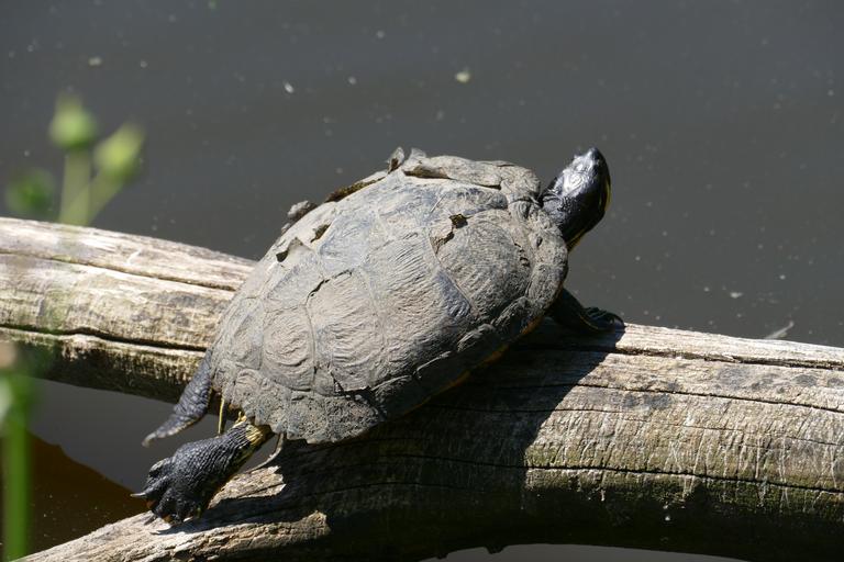 Keywords: turtle water pond nature water turtle panzer animal swim log