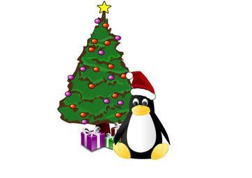 Keywords: tux penguin christmas tree presents christmas xmas x-mas
