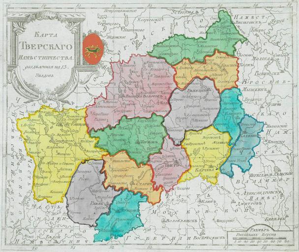 Keywords: Tverskoe Nam-vo.jpg ru Ка та Тве ского наместничества 1792 Атлас Российской импе ии Циф овая копия сделана Российской госуда ственной библиотекой http //www rsl ru издатель типог афия Сытина 1792 PD-old-100 Maps of Tver Governorate