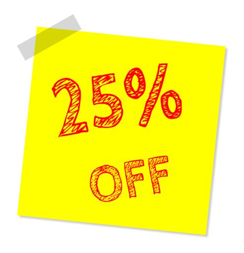 Keywords: twenty five percent off discount sale offer marketing percentage promotion reduction shopping rebate percent price clearance retail bargain
