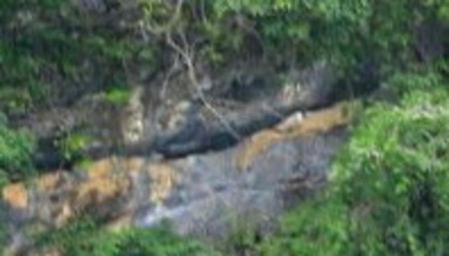 | Keywords: Two fish above Tabon Cave entrance.jpeg  Many of Philip Maise's findings at Tabon Cave are difficult to see for three reasons Extreme age has blended the original artwork into the background they are viewed from a distance and trees both damage and hide the work In this photo Maise contends there are two fish present The heads are pointing to the left and overlap Maise in 2015 announced he is making another trip to the caves to help confirm this find Below the fish he contends the pattern is not random and natural Instead it will prove to be a giant boa constrictor Cc-zero |