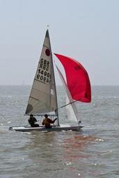 Keywords: two man dingy dingy full sail red water sailing boat wind sea ocean watersports