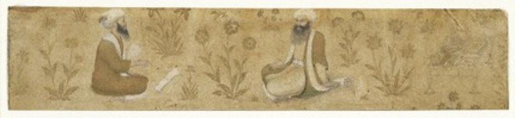 | Keywords: Two Scribes Seated with Books and a Writing Table Fragment of a decorative margin Northern India.jpg These exquisitely painted figures once appeared on the margins of a painting in an album made for the emperor Shah Jahan the ruler who built the Taj Mahal Illuminated borders were frequently used in royal albums where they served to frame and protect a wide array of cherished paintings and calligraphies The two seated men in this margin are either scribes or librarians the man on the left with an open book in front of him is reciting to the man seated in the center At the far right is a low desk with a cup pens and decorated manuscript pages We do not know the location of the painting that this margin once framed Perhaps it was damaged and only this element could be salvaged or perhaps it was taken apart and sold in several pieces circa 1640 1650 Opaque watercolor and gold on paper Overall 2 x 9 5/8in 5 1 x 24 4cm Brooklyn Museum object history credit line Gift of the Ernest Erickson Foundation Inc accession number 86 227 153 http //www brooklynmuseum org/opencollection/labs/splitsecond/painting php id 138 PD-Art Uploaded with UploadWizard 17th-century Mughal miniatures Small images 1640s paintings from India |