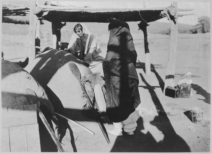 | Keywords: Two Taos women baking bread in outside oven, New Mexico, 1916 - NARA - 519166.tif Local identifier 75-N-PU-106 Department of the Interior Bureau of Indian Affairs Information Office 1947 - Still Picture Records Section Special Media Archives Services Division NWCS-S National Archives at College Park 8601 Adelphi Road College Park MD 20740-6001 1916 Record group Record Group 75 Records of the Bureau of Indian Affairs 1793 - 1999 Record group ARC 404 General Photographs of Indians compiled 1900 - 1957 Series ARC 519152 Variant control numbers NAIL Control Number NWDNS-75-N-PU-106<br /> Select List Identifier INDIANS 65 General notes Scope and content File unit File unit ARC yes <gallery> File Two_Taos_women_baking_bread_in_outside_oven _New_Mexico _1916_-_NARA_-_519166 tif tif File Two_Taos_women_baking_bread_in_outside_oven _New_Mexico _1916_-_NARA_-_519166 jpg jpg </gallery> NARA-cooperation PD-USGov NARA TIF images with categorized JPGs New Mexico Department of the Interior Office of Indian Affairs Pueblo de Taos Native American cuisine Outdoor ovens 1916 in New Mexico Black and white photographs of New Mexico Black and white photographs of standing women 1916 Taos Pueblo Photographs of the Indigenous peoples of North America |