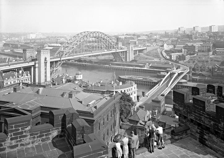 | Keywords: newcastle upon tyne newcastleupontyne 1960s gateshead castle keep castlekeep tyne bridge tynebridge swing bridge swingbridge river tyne rivertyne quays scenic scenic views of newcastle scenicviewsofnewcastle august 1963 august1963 wonderful majestic impressive unusual interesting fascinating land north east of england northeastofengland united kingdom unitedkingdom turners ltd turnersltd bridge river city buildings bank daylight sky ground industry street view streetview digital image digitalimage black and white photograph blackandwhitephotograph brick wall roof window frame construction structure development premises businesses industrial social abstract shadow gathering people flag pole standing observing clothing crease hair blur grain stone social history socialhistory blackandwhite monochrome outdoor black and white A view of the Tyne Bridge and the  Swing Bridge from the Castle Keep, Newcastle upon Tyne, August 1963 (TWAM ref. DT.TUR/2/31921L).  Tyne & Wear Archives presents a series of images taken by the Newcastle-based photographers Turners Ltd.  The firm had an excellent reputation and was regularly commissioned by local businesses to take photographs of their products and their premises. Turners also sometimes took aerial and street views on their own account and many of those images have survived, giving us a fascinating glimpse of life in the North East of England in the second half of the Twentieth Century.    (Copyright) We're happy for you to share these digital images within the spirit of The Commons. Please cite 'Tyne & Wear Archives & Museums' when reusing. Certain restrictions on high quality reproductions and commercial use of the original physical version apply though; if you're unsure please email archives@twmuseums.org.uk   A view of the Tyne Bridge and the  Swing Bridge from the Castle Keep, Newcastle upon Tyne, August 1963 (TWAM ref. DT.TUR/2/31921L).  Tyne & Wear Archives presents a series of images taken by the Newcastle-based photographers Turners Ltd.  The firm had an excellent reputation and was regularly commissioned by local businesses to take photographs of their products and their premises. Turners also sometimes took aerial and street views on their own account and many of those images have survived, giving us a fascinating glimpse of life in the North East of England in the second half of the Twentieth Century.    (Copyright) We're happy for you to share these digital images within the spirit of The Commons. Please cite 'Tyne & Wear Archives & Museums' when reusing. Certain restrictions on high quality reproductions and commercial use of the original physical version apply though; if you're unsure please email archives@twmuseums.org.uk    |