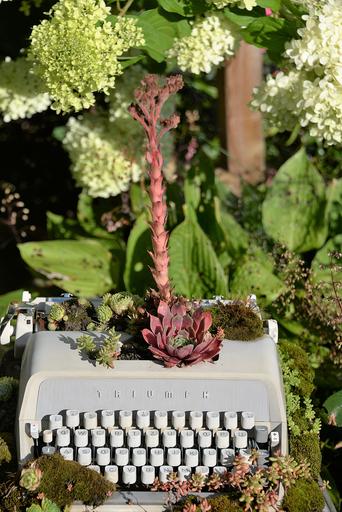 Keywords: typewriter planted gartendeko summer plant