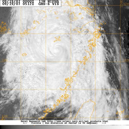 | Keywords: Typhoon Wipha over China 1 19-09-2007.jpg Typhoon Wipha over China Sept 19 2007 Source http //www nrlmry navy mil/tc-bin/tc_home2 cgi ACTIVES 07-ATL-08L INGRID 07-EPAC-12E NONAME 07-WPAC-13W WIPHA 07-ATL-93L INVEST 07-WPAC-93W INVEST 07-EPAC-98E INVEST 07-WPAC-063 TCS063 07-WPAC-068 TCS068 07-WPAC-069 TCS069 07-WPAC-070 TCS070 07-WPAC-071 TCS071 PHOT yes NAV tc ATCF_BASIN wp ATCF_YR 2007 ATCF_FILE /data/www/atcf_web/public_html/image_archives/2007/wp132007 07091900 gif CURRENT 20070919 0512 gms6 x vis1km_high 13WWIPHA 75kts-967mb-278N-1195E 100pc jpg AGE Latest CURRENT_ATCF wp132007 07091900 gif ATCF_NAME wp132007 ATCF_DIR /data/www/atcf_web/public_html/image_archives/2007 YEAR 2007 YR 07 ACTION Latest_Photos ARCHIVE active MO SEP BASIN WPAC STORM_NAME 13W WIPHA STYLE tables AREA pacific/southern_hemisphere DISPLAY Latest DIR /TC/tc07/WPAC/13W WIPHA/vis/geo/1km_zoom TYPE vis PRODUCT vis SUB_PROD geo SUB_SUB_PROD 1km_zoom PROD geo NRL Typhoon Wipha 2007 PD-USGov |