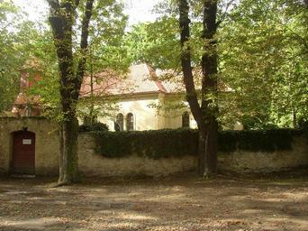 Keywords: U Jana Dubi Kladno KL CZ St John the Baptist church 019.jpg Kostel sv Jana Křtitele v lokalitě U Jána v katastrálním území Dubí u Kladna na východním okraji statutárního města Kladna Gotický hřbitovem obklopený kostel ze 14 století tvořící dnes samotu na křižovatce cest uprostřed rozsáhlého lesa je pozůstatkem zaniklé středověké vesnice Újezdec jinak též Újezd Pohled od jv přes ohradní zeď hřbitova Church of Saint John the Baptist near Dubí eastern suburb of Kladno city Kladno District Central Bohemian Region Czech Republic The Gothic 14th century church located lonely amidst forest is the sole preserved remnant of medieval village of Újezdec aka Újezd deserted during one of domestic wars around 1450 A view from SE over churchyard wall Church of Saint John the Baptist Dubí |