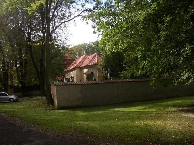 Keywords: U Jana Dubi Kladno KL CZ St John the Baptist church 010.jpg Kostel sv Jana Křtitele v lokalitě U Jána v katastrálním území Dubí u Kladna na východním okraji statutárního města Kladna Gotický hřbitovem obklopený kostel ze 14 století tvořící dnes samotu na křižovatce cest uprostřed rozsáhlého lesa je pozůstatkem zaniklé středověké vesnice Újezdec jinak též Újezd Celkový pohled na kostel a ohradní zeď hřbitova od východu z cesty od Vrapického dvora Church of Saint John the Baptist near Dubí eastern suburb of Kladno city Kladno District Central Bohemian Region Czech Republic The Gothic 14th century church located lonely amidst forest is the sole preserved remnant of medieval village of Újezdec aka Újezd deserted during one of domestic wars around 1450 A general wiew from the east Church of Saint John the Baptist Dubí |