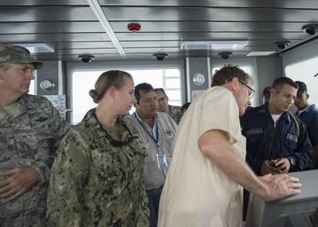 | Keywords: U.S. Ambassador to Honduras James D. Nealon, center right, and other U.S. and Honduran government and military officials tour the Honduran navy patrol boat FNH Morazan (1402) in Puerto Castilla, Honduras, Sept 140901-N-QY430-549.jpg en U S Ambassador to Honduras James D Nealon center right and other U S and Honduran government and military officials tour the Honduran navy patrol boat FNH Morazan 1402 in Puerto Castilla Honduras Sept 1 2014 during Southern Partnership Station SPS 2014 SPS is an annual deployment of U S ships to the U S Southern Command's area of responsibility in the Caribbean and Latin America The exercise involves information sharing with navies coast guards and civilian services throughout the region 2014-09-01 MC1 Rafael Martie http //www defenseimagery mil/imageRetrieve action guid aab940d3433ba7e8a4e5344c31d0dc74be91feff t 2 Public domain photograph from defenseimagery mil http //www defenseimagery mil/imagery html guid aab940d3433ba7e8a4e5344c31d0dc74be91feff 140901-N-QY430-549 2014-09-04 Puerto Castilla PD-USGov-Military-Navy Southern Partnership Station 2014 Images from DoD uploaded by Fæ James D Nealon |