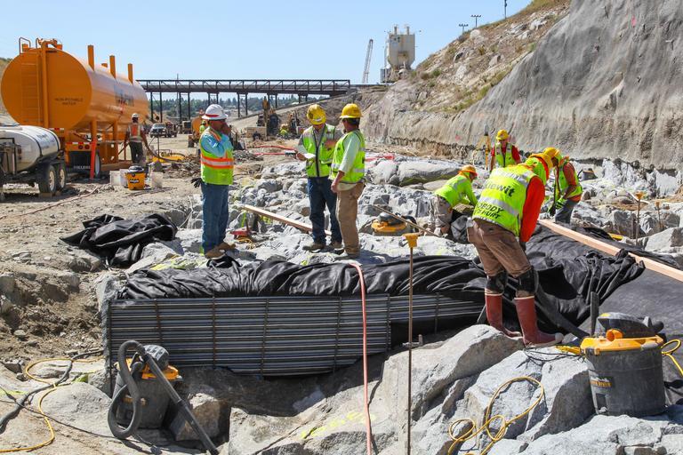 | Keywords: U.S. Army Corps of Engineers Build Spillway to Reduce Flood Risk in Sacramento.jpg en Contractors for the Sacramento District prepare for concrete placements at the Folsom Dam auxiliary spillway project's upper chute April 29 2015 in Folsom California Preparations include survey work surface cleaning and installing groundwater drainage systems underneath black fabric on right prior to nighttime placements The U S Army Corps of Engineers Sacramento District together with the U S Bureau of Reclamation and state and local partners is building the spillway to reduce flood risk throughout the Sacramento region U S Army photo by Todd Plain/Released 2015-04-29 https //www flickr com/photos/sacramentodistrict/17128113947 U S Army Corps of Engineers Sacramento District http //www hydraway net Website other versions USACE-Sacramento District https //flickr com/photos/52057813 N07/17128113947 2016-01-08 11 58 21 United States Government Work PD-USGov Drainage Contractors Sacramento Uploaded with UploadWizard |