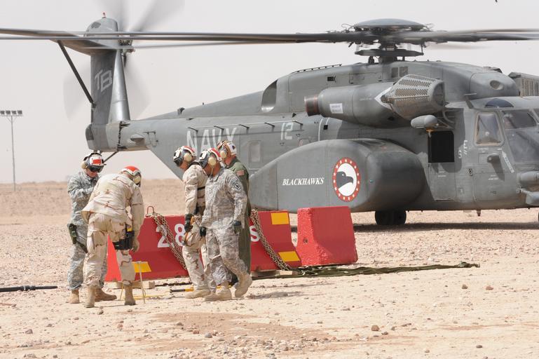 | Keywords: U.S. Navy, Army, and Coast Guard Answer Call to Bring Power to Coastal Island DVIDS173466.jpg en Members of the United States Navy Army and Coast Guard conduct sling load drills on a base in the Middle East on April 11 The team moved a generator with the help of a MH-53E Sea Dragon from Helicopter Mine Countermeasure Squadron 15 to Warba Island a few miles off Kuwait 2009-04-11 Petty Officer 2nd Class Jorge Saucedo https //www dvidshub net/image/173466 090521-N-+++++-002 2009-05-21 03 52 4 PD-USGov-Military-Navy MH-53E Sea Dragon Images from DoD uploaded by Fæ |