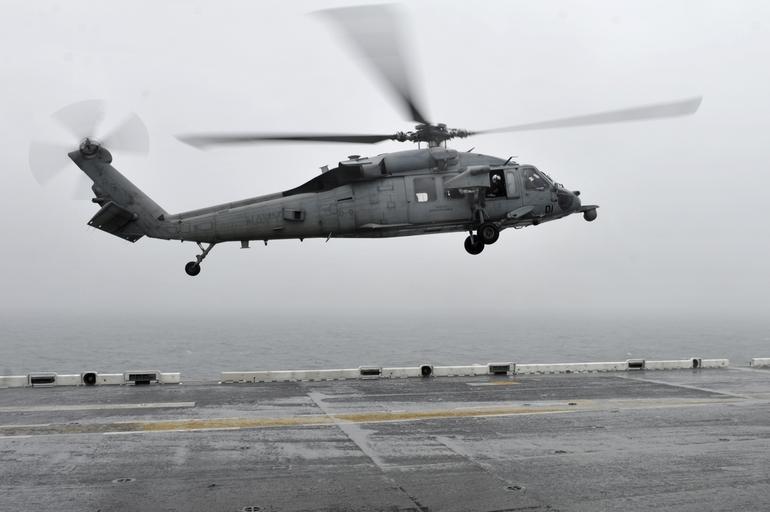 | Keywords: U.S. Navy helicopter landing on a ship after Sewol rescue operation.jpg en EAST CHINA SEA April 17 2014 An MH-60S Sea Hawk helicopter assigned to Helicopter Sea Combat Squadron HSC 25 lands on the flight deck of the forward-deployed amphibious assault ship USS Bonhomme Richard LHD 6 after conducting search and rescue operations Sailors and Marines onboard Bonhomme Richard are conducting search and rescue operations as requested by the Republic of Korea navy near the scene of the sunken ferry Sewol in the vicinity of the island of Jindo U S Navy photo by Mass Communication Specialist 2nd Class Adam D Wainwright/Released 2014-04-17 11 29 27 https //www flickr com/photos/compacflt/13907678205/ U S Pacific Fleet PD-USGov-Military-Navy Photographs taken on 2014-04-17 Uploaded with UploadWizard Sinking of the MV Sewol USS Bonhomme Richard LHD-6 Helicopter Sea Combat Squadron 25 United States Navy |