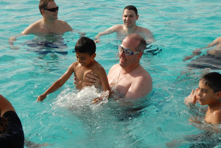 View Original:U.S._Navy_Lt._Cmdr._Eric_Fretz_swims_with_an_Iraqi_boy_scout_in_the_Australian_swimming_pool_during_a_visit_to_Camp_Victory_in_Baghdad,_Iraq,_Oct._11,_2008_081011-N-YO258-015.jpg (3872x2592)